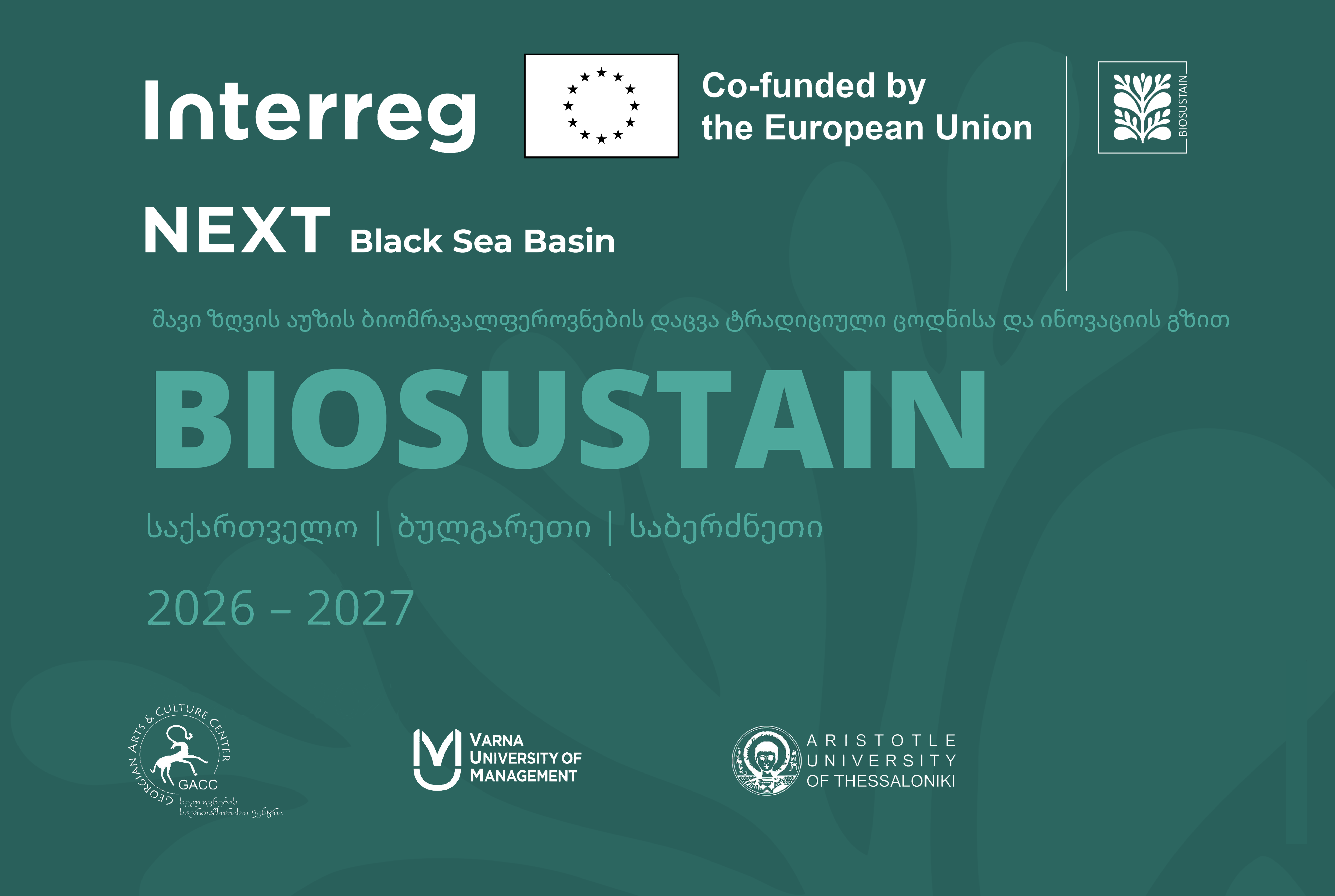 BIOSUSTAIN-ის მიზანია შავი ზღვის აუზის (BSB) ეკოსისტემებისა და ლანდშაფტების დაცვა და აღდგენა ტრადიციული ეკოლოგიური ცოდნის ინოვაციური გამოყენების გზით. პროექტი ხელს უწყობს ადგილობრივი საზოგადოების აქტიურ ჩართულობას ბიომრავალფეროვნების დაცვაში და ბუნებრივ მემკვიდრეობაზე დაფუძნებული მდგრადი ეკონომიკური მოდელების განვითარებას.